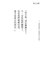 朋友不用多,一個知心的就好──#好朋友,不一定是先認識的或是認識最久的,也不一定是一直待在身邊的人。但,他是前一刻還在跟你吵架,下一刻會為了你被欺負而跟別人沒完沒了的人。#