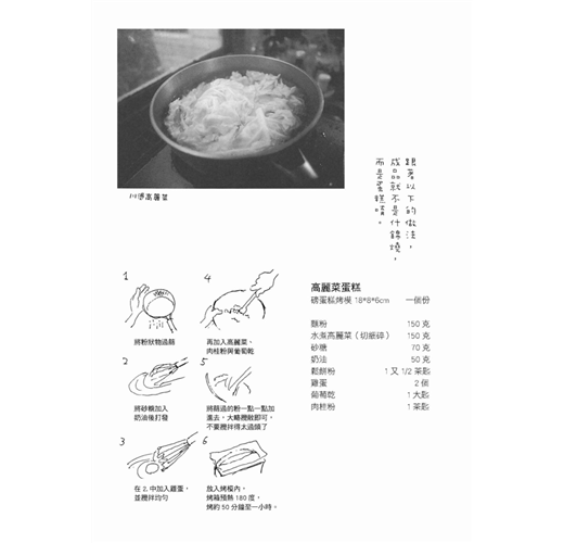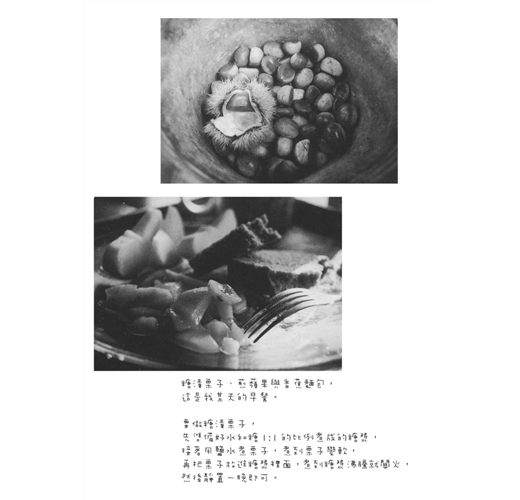 回到住處,一瓣瓣剝下菜葉搓洗瀝乾,切絲、滾刀或斜切大段,花花綠綠依照下鍋順序一皿一皿排盤。備料很像做美勞,只要不把手指剁下來,其實是老少咸宜的遊戲。最早的記憶之一,是在媽媽下班之前先把飯按下去。按下去者,大同電鍋開關是也。連帶可以墊層蒸蛋或者自家特調瓜仔肉一起蒸。舊時家屋輕視伙房,隔間侷促,流理臺瓦斯爐系統廚具一塞,只剩一條難以錯身的過道。兄妹在這樣昏暗的角落一起動手洗米洗菜,順便開冰箱偷喝罐養樂多,頗有死守前線壕溝的同袍義氣。炒菜銼銼、排油煙機轟轟、幫忙上菜耷拉著拖鞋啪嗒啪嗒喊借過,就等著筷子叨擾瓷碗的叮叮噹噹和大快朵頤的嗯嗯啊啊。