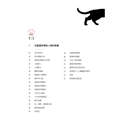 這本書也是寫給我貓咪們的謝卡和情書。用心刻畫嘻嘻的深情、梅的美麗、小炭充滿魔性的魅力、原子小金剛的撒嬌,還有我對這些毛小孩的愛……彙集而成這本書。如果你也有隻心愛的貓咪,將這本書作為寄給他們的情書吧。如果跟貓咪還不熟,讀了這本書一定會讓你愛上貓咪的。衷心希望讀了本書後能讓你更愛貓,一起讓世上的貓全都過得更幸福,哪怕只多那麼一點點也好。如果能夠「愛貓及貓」,不只疼愛自己的貓,也把這份愛分享給街貓們,那就再好不過了。
