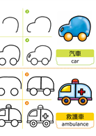 繪畫一點都不難,書中將圖案分解步驟,只要簡單的一個弧度、一條直線,可愛的兔子、游水的魚兒,還有叭叭叭的小汽車就出現囉!
