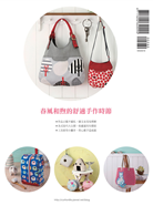 封面親子包款的配色呼應了桃紅柳綠的春景,大人的包型外觀獨特成熟,孩子的活潑可愛,兩者異中求同,獨一無二的創作。翻閱雜誌時,想像著與孩子一同提著親子包,快樂的外出時光,就會擁有滿滿的手作動力。