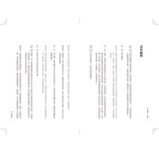 「青年論壇」幾十場下來分好幾個重點,其中我們總是會談到「青春」的定義。什麼是青春?二十到三十?十五到二十五?二十至四十?依照日本文學家三島由紀夫的定義:青春就是未得到某種東西的心理狀態,於是形成渴望,形成憧憬,形成可能性。儘管眼前埋伏廣袤的原野和恐懼,儘管還一無所有,但在幻想中,?感覺自己擁有一切,那就是青春。
