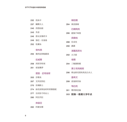 這幾年來國內的大大小小歌劇演出,一年不下幾十部,幾乎場場爆滿、一票難求。在出版了《愛之死──崔斯坦與伊索德》、《杜蘭朵的蛻變》、《莎樂美》、《華格納.指環.拜魯特》等膾炙人口、深受讀者喜愛的歌劇作品之後,我們回頭再一次檢視三年多前出版的《你不可不知道的100部歌劇》,發現,過去的規劃與編輯疏漏不少。讀者在浩瀚的歌劇作品中,如何入門,哪些元素才是值得我們一再玩味,對於歌劇的基本概念與歷史的瞭解該如何著手?種種需求都應該兼顧。因此,在讀者的熱情催促下,全新改版、重新規劃、更深入、更多元豐富的《你不可不知道的100部經典歌劇》,終於與讀者見面。