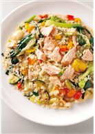 28 鮭魚和豐盛蔬菜的奶油燉飯