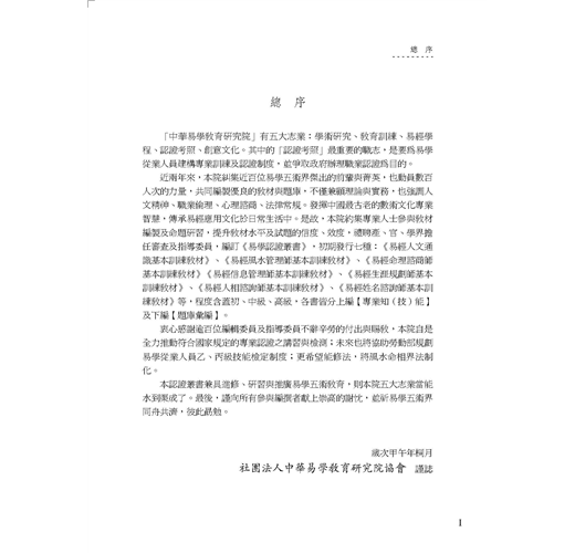 我們糾集近百位易學五術界傑出的前輩與菁英,共同編製優良的教材與題庫,不僅兼顧理論與實務,也強調提升教材水平及試題的信度、效度。從學理及教育的觀點來編撰,不涉及派門之爭,不強調意識形態,盡力以科學角度闡述,排除迷信的論點。故本《易學認證叢書》實兼具進修、研習、考照與推廣正統易學五術教育之功能。 況且,本會已通過勞動部TTQS訓練品質系統認證,是最值得信賴的訓練機構。