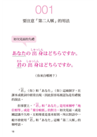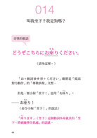 初次見面的交談&涉及隱私的問題/和女性對話時/奇怪的敬語/請求的時候/詢問情緒或意願時/回應的時候/一來一往的對話/助詞的用法/文型的誤用&不恰當/詞彙的誤用&不恰當