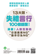 除了言語上的失禮,日本社會約定俗成的公眾默契,包含「動作、行為、外貌、約定、順序」等,本書也詳述及提醒。希望大家前往日本旅遊或是居住時,能預先知曉這樣的公眾默契原則,並能入境隨俗,更加融入日本生活,更融洽的與日本人互動。