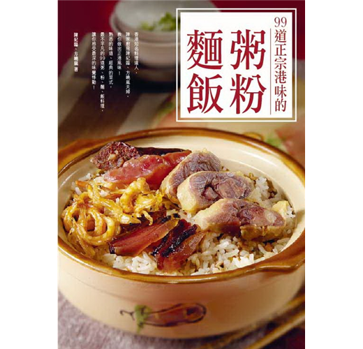在本書中,我們共介紹了99道不同的粥粉麵飯,盡量涵蓋了大多數香港人最常吃、最傳統、最受歡迎的款式,例如廣東人最愛的肉絲炒麵、乾炒牛河、鹹魚肉片煲仔飯、艇仔粥、味菜牛柳絲炒米粉……,還有中西合璧豉油西餐式的白汁雞皇飯、焗豬排飯,還有那可能已被遺忘的俄國牛柳絲飯,再加上東南亞地區的越南生牛肉河、印尼炒飯、馬來椰漿飯、新加坡蝦麵、叻沙米線……等等。