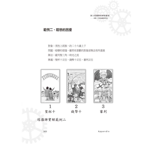 只不過人生本來就要面對許多課題,與其強行改變命運,不如順著命運,從中學習寶貴的經驗,體驗命運要教會你些什麼。而且牌面的吉凶禍福是以世俗的價值觀去衡量,實際上不論哪張牌都沒有絕對的好壞,任何人世間的變局都是有意義的,只是很少有人能夠欣然接受。