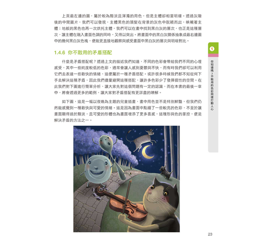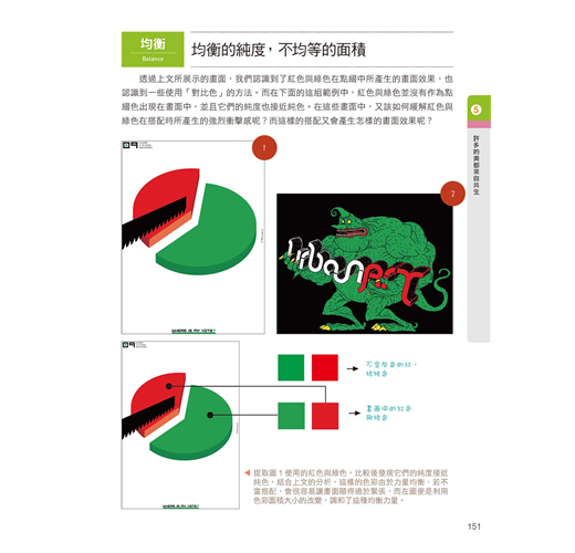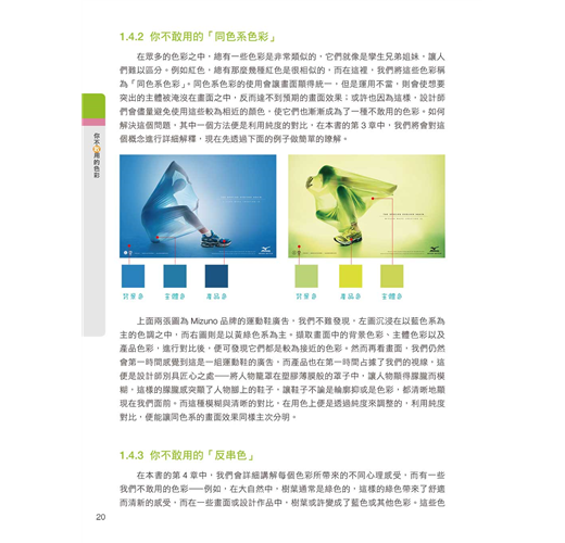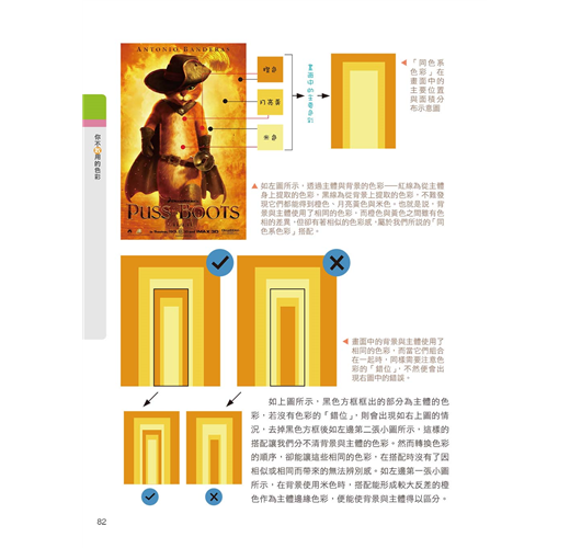 配合不同類型的色彩主題,從基礎的色彩三要素、色彩對比構成出發,引申出有效且能成功讓作品脫穎而出的配色解決方案。