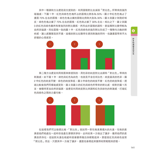 從一般人不敢輕易使用的特殊色、類似色、反串色、對比色、渾濁色、矛盾色等6大類型色彩入手,帶領讀者征服難以掌握的色彩搭配類型。