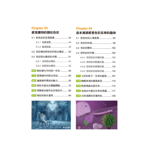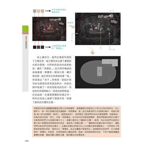 在理論中不失實例為佐證,在實例中不乏色彩知識為根基;書中實例包羅萬象,涵蓋廣告、海報、繪畫等作品類型,包含科幻、溫馨、怪誕、復古、歡樂等不同風格,絕對讓你一飽眼福!