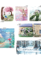 雪中金閣寺、午後街景、海濱落日、漫天粉櫻、雨中孤城、迷霧森林、子夜港口…