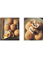 5 二次發酵:將麵糰底部朝上,輕輕擀成直徑10cm左右的大小,各放上步驟1熬煮的蘋果1大茶匙,然後依照上下、左右、斜右方、斜左方的順序將麵皮包覆起來(請參照P54)。彷彿要拉平表面般重新將麵糰整圓,並以手指將麵糰底部確實收緊。排在鋪著烘焙紙的烤盤上,蓋上濕棉布,放在溫暖的地方發酵到接近2倍大(約60分鐘)。