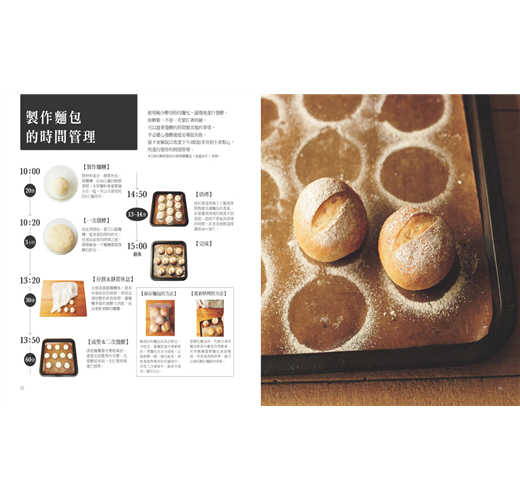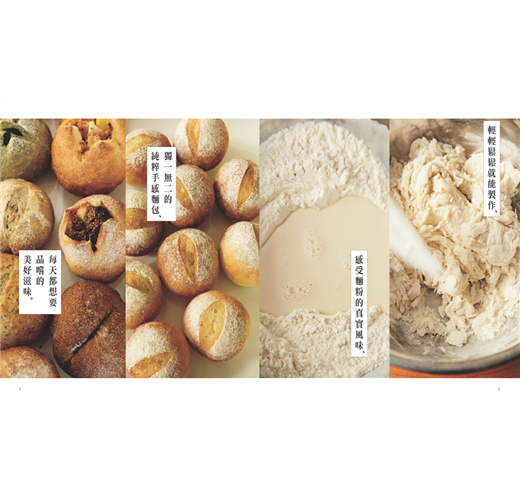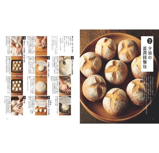 而目前我所工作的麵包坊老闆,也正是在此時相識的。一心想要烤出「屬於自己風味的麵包」,在接下來的幾年中不斷地反覆嘗試錯誤,終於完成現在這個只要一點點酵母就能烘焙製作的方法,完全不使用奶油和雞蛋,利用幾個簡單步驟即可輕鬆烤出美味的麵包食譜。