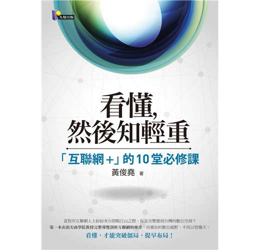 VIDEO 「無論從事什麼行業, 一旦你認為自己的行業跟互聯網沒什麼關係, 再過一、兩年這個行業就跟你沒關係了。」 ──中國代表性社群網站「人人網」、團購網站「美團網」創辦人王興 當對岸互聯網人士紛紛來台指點江山之際, 你是否驚覺到台灣的數位空洞? 第一本由頂尖商學院教授完整導覽剖析互聯網的專書。 培養你的數位視野,不再以管窺天。 看懂,才能突破僵局,提早布局! 長期鑽研電子商務的黃俊堯教授,透過與業界人士的互動和教學經驗,察覺台灣對於數位變局相對無感,以致布局的動作只是見樹不見林。這類敷衍,主要因為大家尚未感受到急迫的壓力。事實上,台灣數位發展的最大障礙還是在:看懂了嗎?