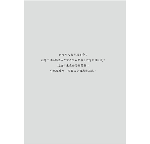 前言 第一堂課:偶然與必然 ◎歷史的偶然 ◎歷史的必然 ◎對於萬物重新想像 第二堂課:時、勢、人 ◎不同世代的觸網經驗 ◎新經濟、新邏輯 零邊際成本的免費∕資訊要求自由∕注意力經濟∕信任經濟,也是共享經濟∕消費者身分多重化∕使用者為王∕唯變不變 ◎世界到底平不平? ◎萬山不許一溪奔 第三堂課:平台、平台 ◎平台不是新玩意兒 ◎正或負?這邊還是那邊? ◎養大一個平台 聰明的雙邊訂價∕精簡為上∕就是要不一樣∕從利基做起∕鞏固核心槓桿業務∕市場包絡與反包絡 ◎數位平台的特性 高效連結與媒合∕多樣的附加服務∕收益方...