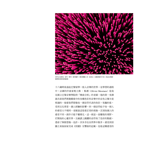 我是專業鋼琴演奏家,少年離家,遠赴巴黎留學,鄉愁早早環繞著我的心田,特別思念台灣,熱愛台灣。回台之後致力於台灣音樂、台灣美術(因父親的關係)的研究,有幸擔任文建會主委,統籌全國文化事務時,全力為建立「台灣文化主體」而努力。主體的累積就是需要有文學創作、藝術創作、科技發明、生活內容創作……等,而我所持的人生態度就是我在音樂領域中的專業態度。