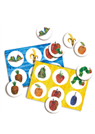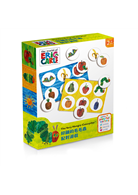 好餓的毛毛蟲配對遊戲,使用孩子耳熟能詳圖畫書裡的角色與圖案,讓孩子第一次玩桌遊就上手。年紀較小的孩子,可以先從配對遊戲玩起,選出和遊戲板上一樣圖案的圖卡,增進觀察力,並練習等待與輪流;年紀較大的孩子,可以玩記憶遊戲,先將圖卡反蓋,再依序輪流翻牌,找尋和遊戲板上相同圖案的圖卡,看誰最先找到6個圖案!