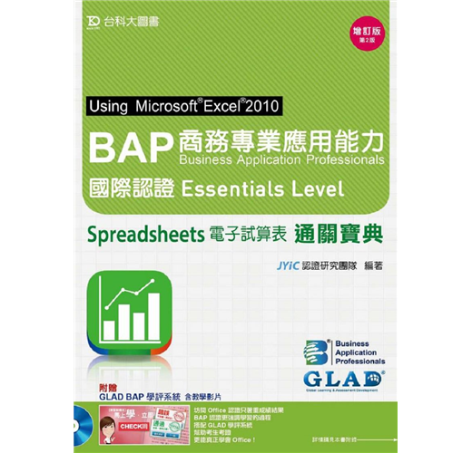 1.本書為BAP Spreadsheets 2010電子試算表核心能力等級(Essentials Level)考前複習所擬訂之測驗題組與解析,讓您輕鬆考取BAP國際認證,有效提昇競爭力!