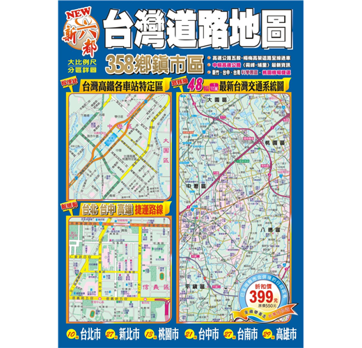 台灣交通建設日新月異,後續將有更多的快速道路持續建構,如此將構成全台高架快速道路網,對於往後行車速度將更為快速、流暢,往來時間的縮短。為致力於圖資的精確性,本公司和康訊科技電子地圖合作,結合其長期研發的高科技電子資訊系統,繪製而成各比例尺的交通圖和鄉、鎮、市街道圖,隨時作更新的服務。用心、高品質的內容,現以優惠的價格出版,無疑是讀者暢遊台灣的最佳好幫手。