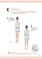 腎俞穴.腰薦關節/3指.下腹9點/拇指.背肉6點/4指.撫去腰紋/掌根.肚臍周圍/振動掌壓.褲頭浮肉
