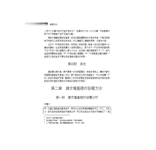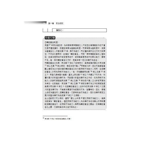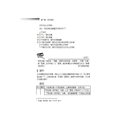 1.本書每章節前附有重點提要,讓你輕鬆抓住民法相關概念,建立起法律架構