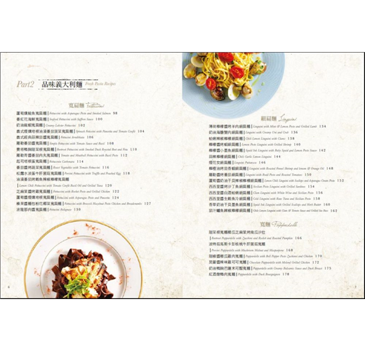 This book is a creative effort to introduce fresh pasta to everyone in Taiwan. There are a few traditional recipes but most of them are my own creation within the boundaries of what a pasta dish must be.