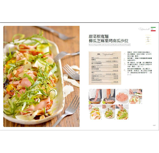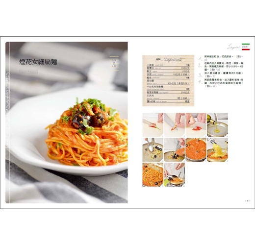 這本書是將新鮮義大利麵注入新意與創造力,介紹給台灣讀者。有幾道是傳統義式料理,但其他大多數都是在不跳脫義大利麵的規範下,我自己研發的新菜色。