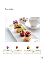 書中特別以黏土專用調色尺講解比例,讓初學者能夠更加容易上手,製作出想要的作品尺寸,丸子(MARUGO)老師還貼心整理出本書收錄的作品調色總覽表,一目了然的重點歸納,讓新手可以更快速找到自己想作的多肉植物,對於未曾接觸黏土手作的您,本書是入門的最佳幫手喲!快跟著丸子(MARUGO)老師一起打造專屬自己的彩色多肉植物生活吧!