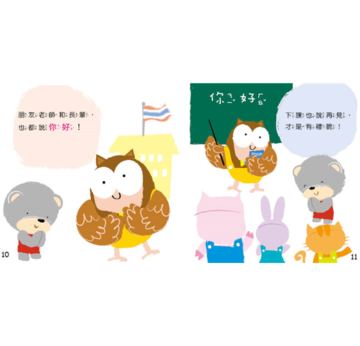 書中出現各種的場景,以及不斷出現的「你好」,讓孩子在不同的生活情境,學習合宜使用禮貌用語,並且重複練習,調整自己的行動,幫助孩子學習遵守生活規範。