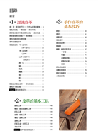 本書以手作皮革的基本技法為主,從基本知識開始,不同種類的皮革特性介紹、說明基本工具的使用方式,帶領讀者認識皮革的世界。
