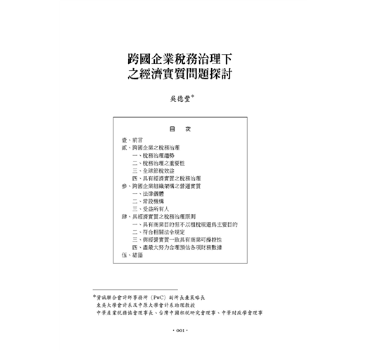 01.跨國企業稅務治理下之經濟實質問題探討/吳德豐