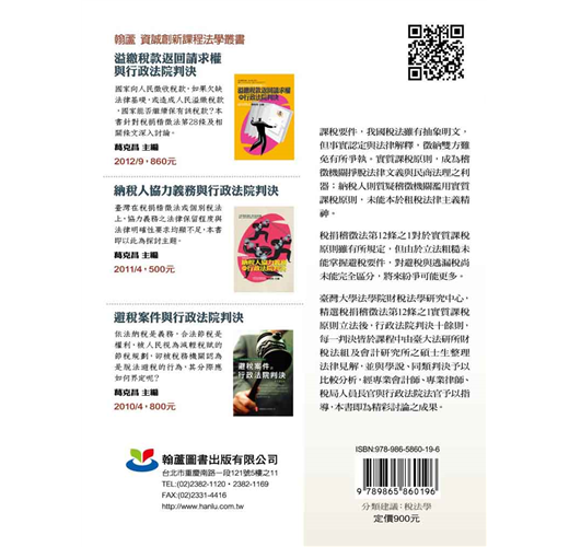 本書要旨,則對稅捐稽徵法第12條之1,關於實質課稅加以分析討論,很值得相關領域重視。