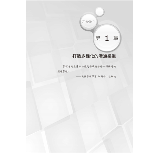 本書分別從溝通渠道、溝通信任、溝通情境、指令傳達、傾聽、反饋、讚美、批評及衝突處理等方面,選取了溝通管理中的80個典範行為,涵蓋了溝通管理的各個層面。本書選用的都是溝通管理中的細節問題,只要這些細節做到位,還怕溝通效果不佳嗎?