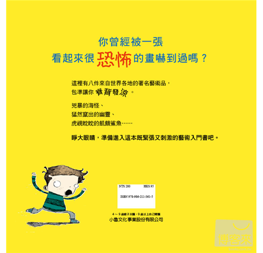 《藝術讓你嚇一跳》以淺白生動的描述,為小朋友介紹八個讓人頓起涼意的藝術作品,輔以該作品的創作背景和作家生平介紹。藝術作品塑造出的緊張氛圍,將幫助孩子聚精會神,引發他們想認識作品的動機,發現原來藝術如此貼近生活又生動有趣。