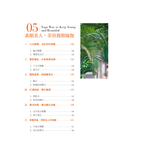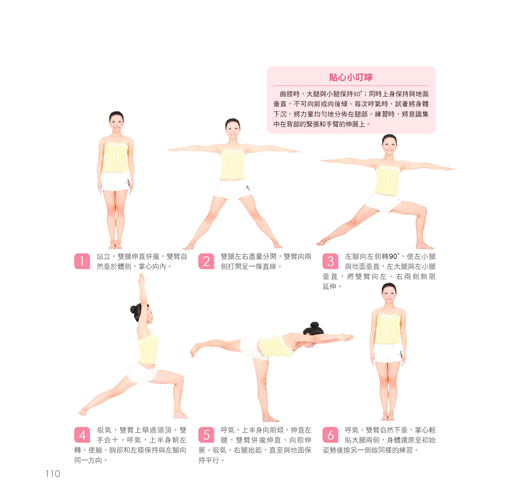瑜伽體式由普梵思諾瑜伽中心精心編排,從初級開始,循序漸進升到高級,並針對瘦身、美容養顏等不同的功效精選瑜伽體式,配以瘦身養顏小秘訣,絕對能滿足不同女性族群的需求。