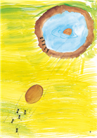 螞蟻想把蛋搬回巢穴,卻在途中滾到小水池裡。牠們找幫手吸乾水池的水、找葉子把蛋載到岸邊,可是都沒成功。