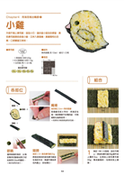 ★除了造型壽司卷的包捲作法外,更介紹了基本的準備A到Z,從海苔、蛋皮、壽司飯、壽司醋、配色材料的製作到使用的道具,仔細拆解每個動作及技巧,新手速成壽司卷職人!