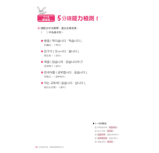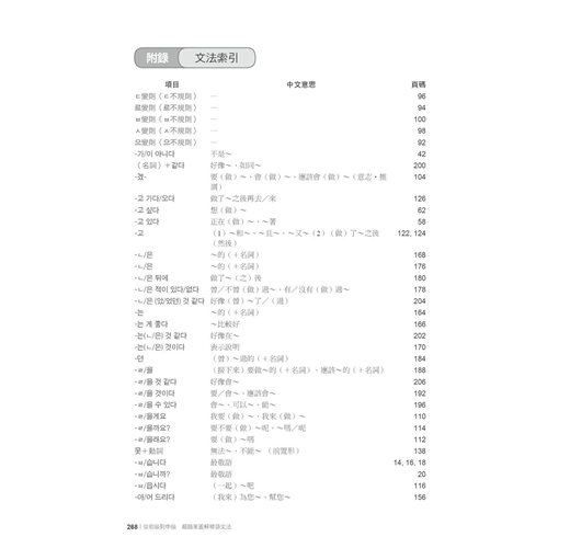 全書附有完整練習題解答及文法索引,韓語學習零疑慮。