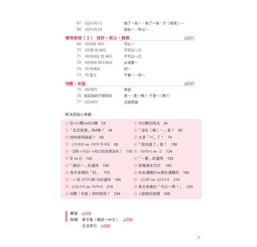 5.練習題解答及文法索引,韓語學習零疑慮!