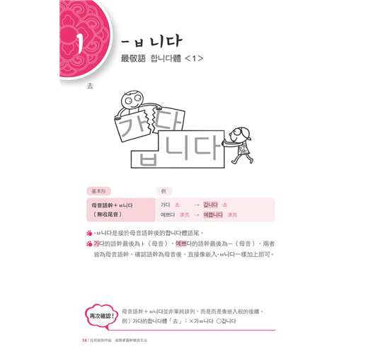 這麼多樣有趣的學習方式,讓您學習文法不再枯燥乏味,就跟著《超簡單圖解韓語文法》一起快樂學習韓語吧!