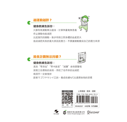 本書是日本人氣健身教練根據自身經驗總結寫出的減肥指南,他認為減肥的關鍵不在於運動,而在於調整飲食生活,指出了減肥的誤區,提出科學的減肥法和合理的膳食結構,具有一定的現實指導意義。