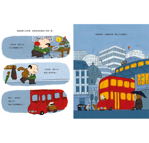 人越長大,生活作息越趨規律,上學、上班,固定的時間,固定的路線,固定的人事物。就像這本書裡的巴士司機行駛在被指定的公車路線上,行駛在固定的生活軌道上,一成不變……就會讓人想要有一點改變。