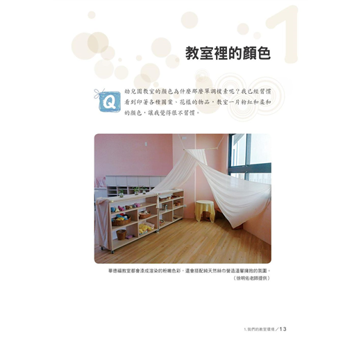 幼兒園教室的顏色為什麼那麼單調樸素呢?我已經習慣看到印著各種圖案、花樣的物品,教室一片粉紅和柔和的顏色,讓我覺得很不習慣。
