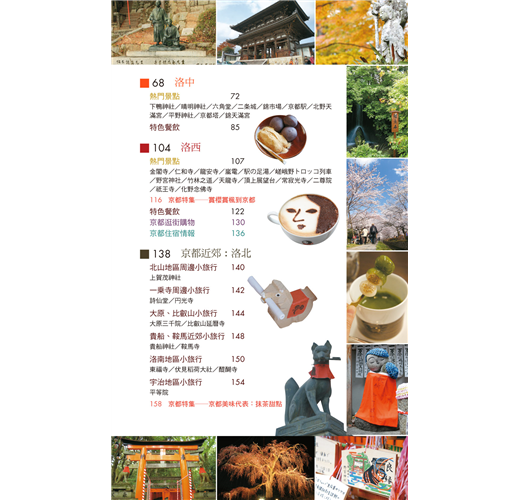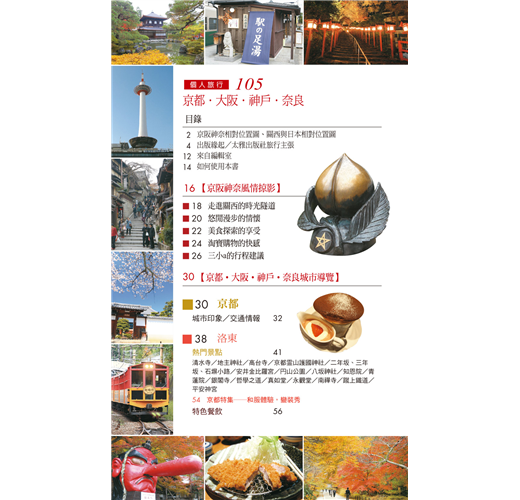 以動人精采的圖片版面呈現最屬於這地的風情,此時無聲勝有聲。從不同面向:走進關西的時光隧道,悠閒漫步的情懷、美食探索的享受、掏寶購物的快感,帶你進入京阪神奈的世界。