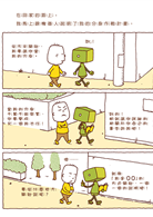 你了解自己嗎?你能透過自己的觀察與自我對話來了解自己這個個體嗎?作家設定的每個自我探究主題,都可以引導孩子去創意思考並幫助孩子更了解自己呢!除此之外,創意思考還來自於作家的圖像設計,把自己想像成一台機器,個人的專長特色就變成機器的產出物了。若以身體運作的觀點來看,人體的確是一台複雜又精密的機器,那小男孩做了那麼多自我探究,是不是就能讓機器人成功成為自己的化身呢?作家在最後一頁的圖文引人發噱。