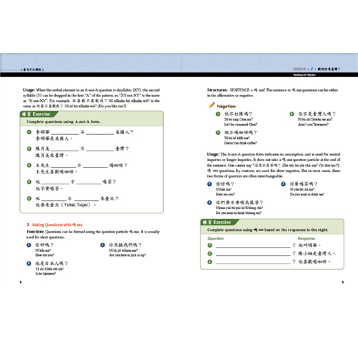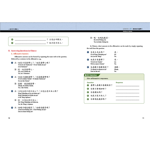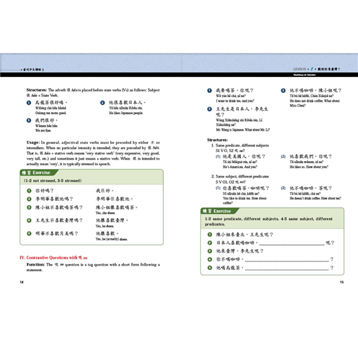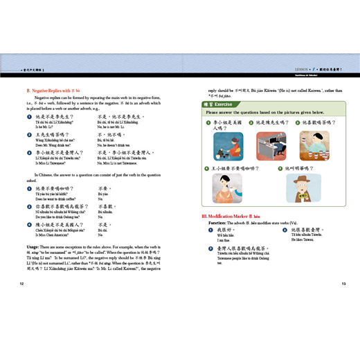 The field of L2 Chinese in Taiwan seems to have adopted the world-famous 'one child policy'. The complete set of currently used textbooks was born a generation ago, and until now has been without predecessor. We are happy to fill this vacancy, and with the title ‘number two’, yet we also aspire to have it be number two in name alone. After a generation, we present a slightly disciplined contemporary language as observed in Taiwan, we employ Hanyu Pinyin without having to justify it cautiously and timidly, we are proud to present a brand-new system of Chinese parts of speech that will hopefully eliminate many instances of error, we have devised two kinds of exercises in our series, one basically structural and the other entirely task-based, each serving its own intended function, and finally we have included in each lesson a special aspect of Chinese culture. Moreover, all this is done in full color, the first time ever in the field of L2 Chinese in Taiwan. The settings for our current series is in Taipei, Taiwan, with events taking place near the National Taiwan Normal University. The six volumes progress from basic colloquial to semi-formal and finally to authentic conversations or narratives. The glossary in vocabulary and grammar is in basically semi-literal English, not free translation, as we wish to guide the readers/learners along the Chinese 'ways of thinking', but rest assured that no pidgin English has been used.