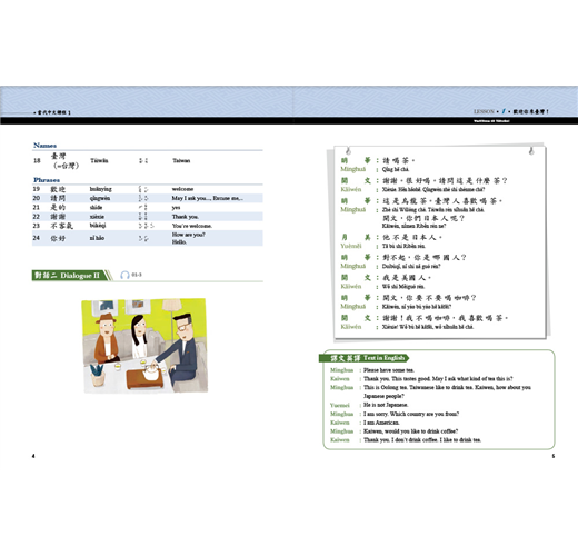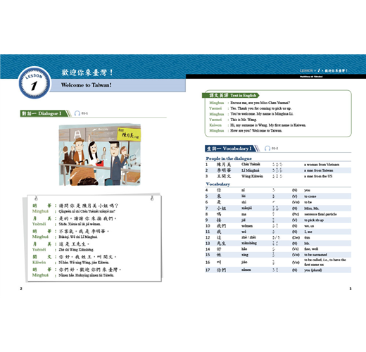 MTC is presenting this brand new core material after half a century’s worth of educational experience, and we have taken extra care to ensure it is of uncompromised quality. We were delighted to have American professors Claudia Ross, Jianhua Bai , and Yea-fen Chen act as consultants, Professor Teh-Ming Yeh from Taiwan, Professor Tao-chung Yao from the U.S., and Professor Xun Liu from China on the review committee, and professors Ying Cherry Li and Yung-O Biq of NTNU’s English department help with the respective translation of vocabulary and grammar points. The material was first trialed at MTC and other language centers around Taiwan for a year. The current version underwent numerous drafts, and materialized under the careful guidance of the consultants, a sedulous reading from the review committee, and feedback from teachers and students. As for the editorial process, we owe the greatest thanks to the indefatigable editorial team, the professors and their invaluable input, and the teachers and students who were willing to trial the book.