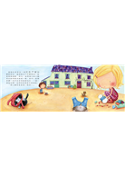 P. 1-2: 德德和莉莉是一對形影不離的鄰居好友。她們每天下午都聚在一起發明新遊戲。昨天,他們兩人把小貓咪打扮得跟洋娃娃一樣。其中一隻還穿著一件不合身的套頭毛衣,一拐一拐地走著!他們的爸媽很生氣地說: 「對小貓咪要溫柔一點呀!」
